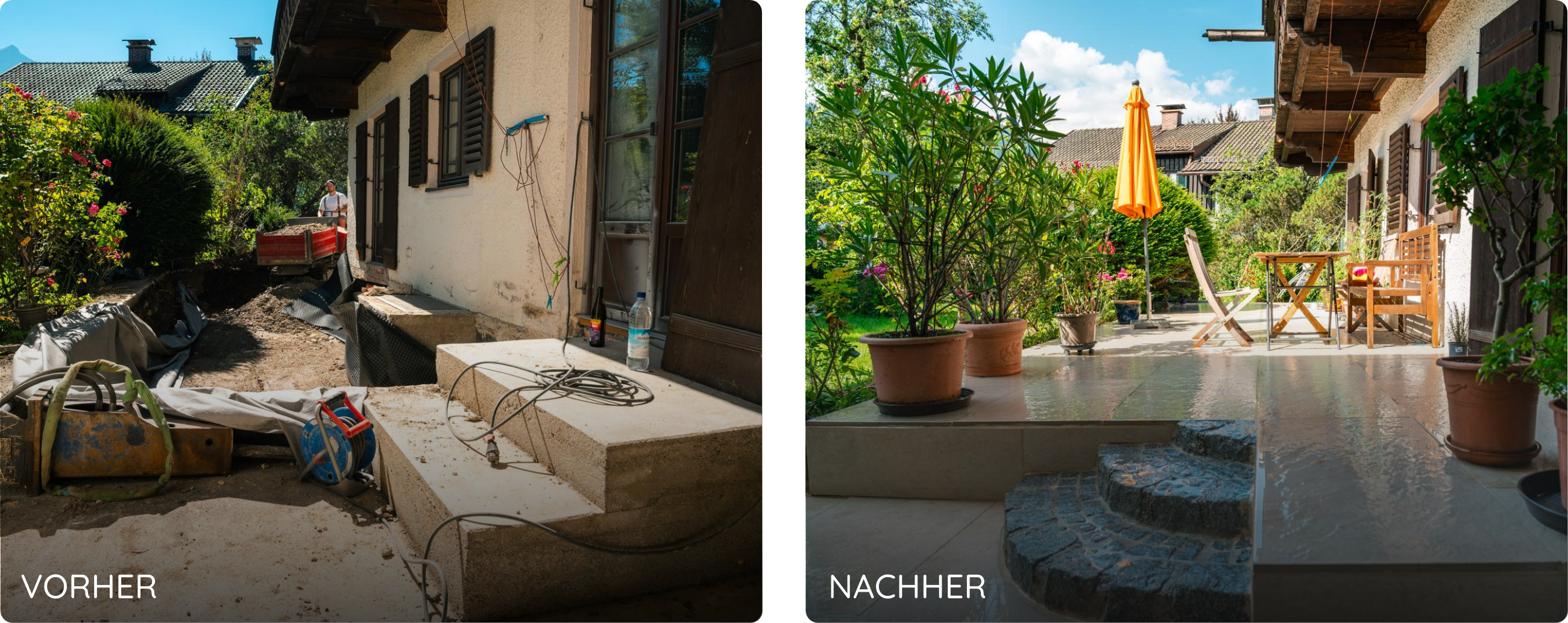 Jedes Projekt erzählt seine eigene Geschichte. Ob kleine Gartenumgestaltung, aufwendiger Terrassenbau oder komplette Neuanlage – wir setzen Ideen zuverlässig und mit Liebe zum Detail um. Werfen Sie einen Blick auf unsere Arbeiten und lassen Sie sich inspirieren.